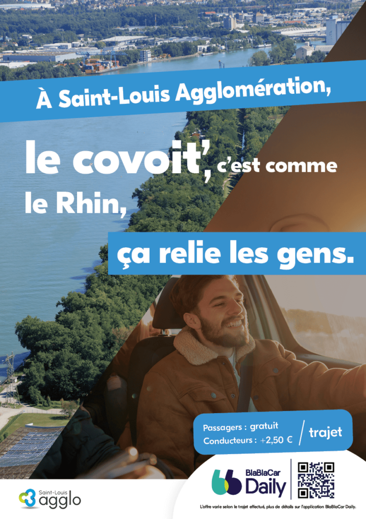 Dans le cadre de son Plan Climat Air Énergie Territorial et de sa labellisation « Territoire engagé en transition écologique », Saint-Louis Agglomération s’engage pour le covoiturage en proposant l’application BlaBlaCar Daily.