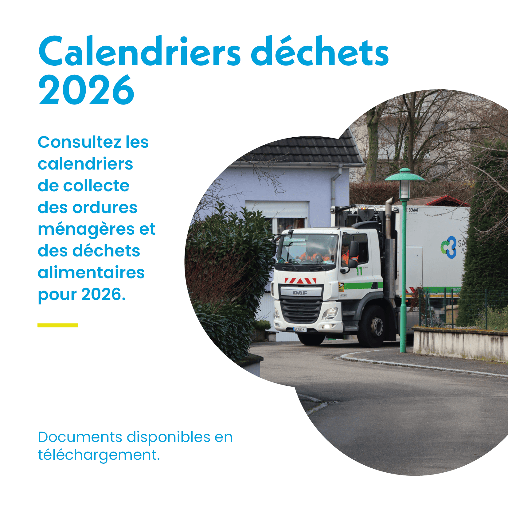Les calendriers de collecte des ordures ménagères (OM) et des déchets alimentaires pour l’année 2026 sont désormais disponibles.