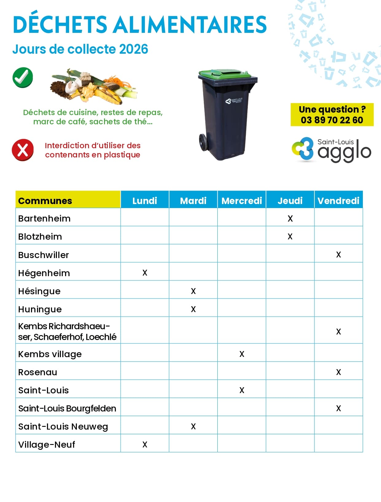 Collecte des ordures ménagères et déchets alimentaires : calendriers 2026 en ligne