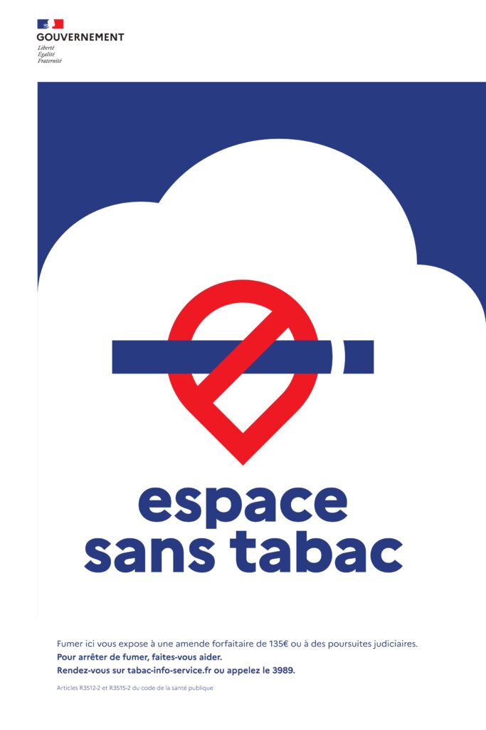 Des panneaux sont installés pour indiquer clairement les zones où il est interdit de fumer. Les fumeurs s’exposent à une amende forfaitaire de 135 €, pouvant atteindre 375 € en cas de majoration et jusqu’à 750 € en cas de récidive.