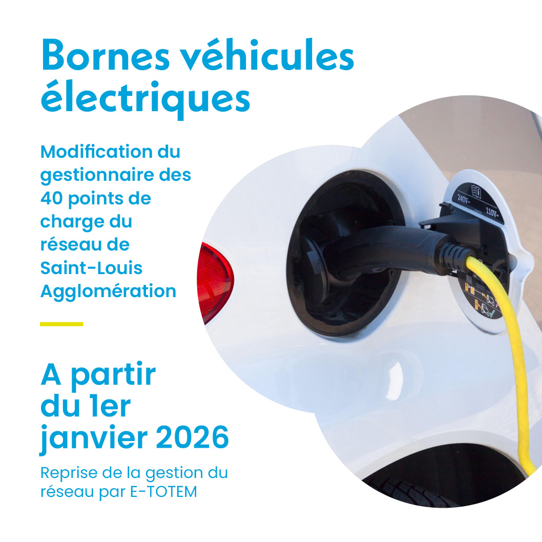 À partir du 1er janvier 2026, l’opérateur E-TOTEM (https://ow.ly/IXWZ50Xgabu) reprendra toute la gestion du réseau des 40 points de charges de Saint-Louis Agglomération.